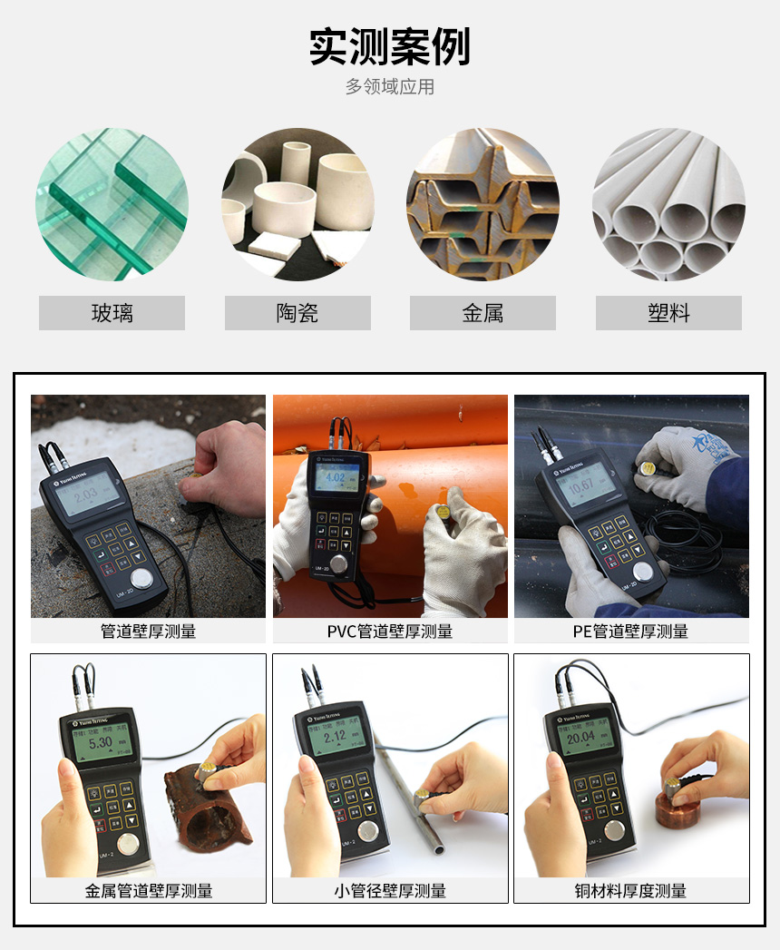 | 標(biāo)準(zhǔn)模式測量范圍 | 0.8㎜~300㎜(取決于所配探頭和被測材料,標(biāo)配探頭測量范圍是1.0-100mm) |